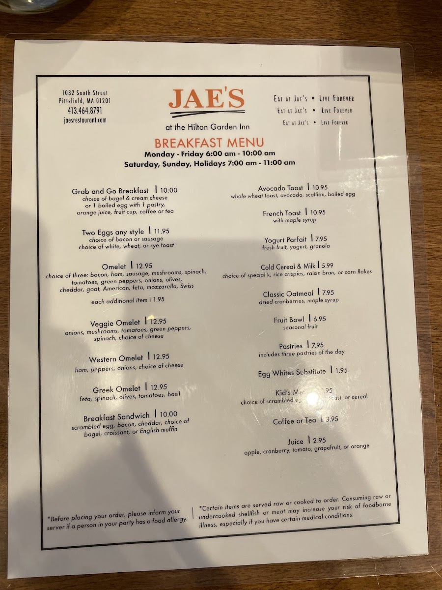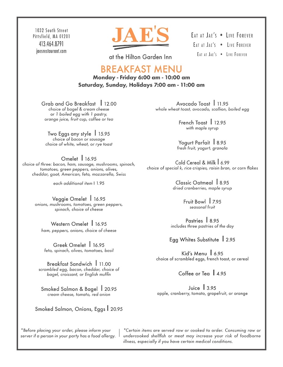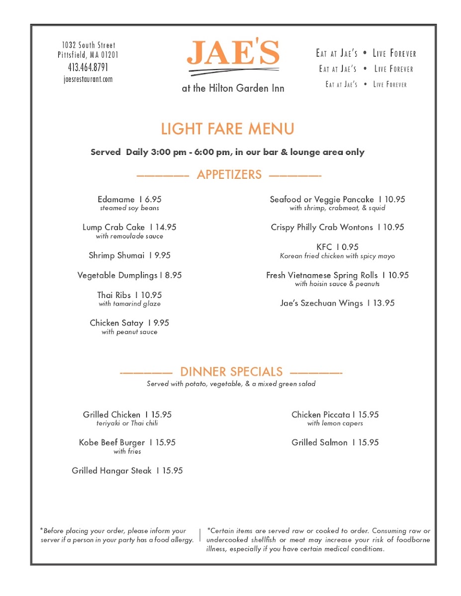 Jae's at the Hilton Garden Inn Menu (2025 Update)
